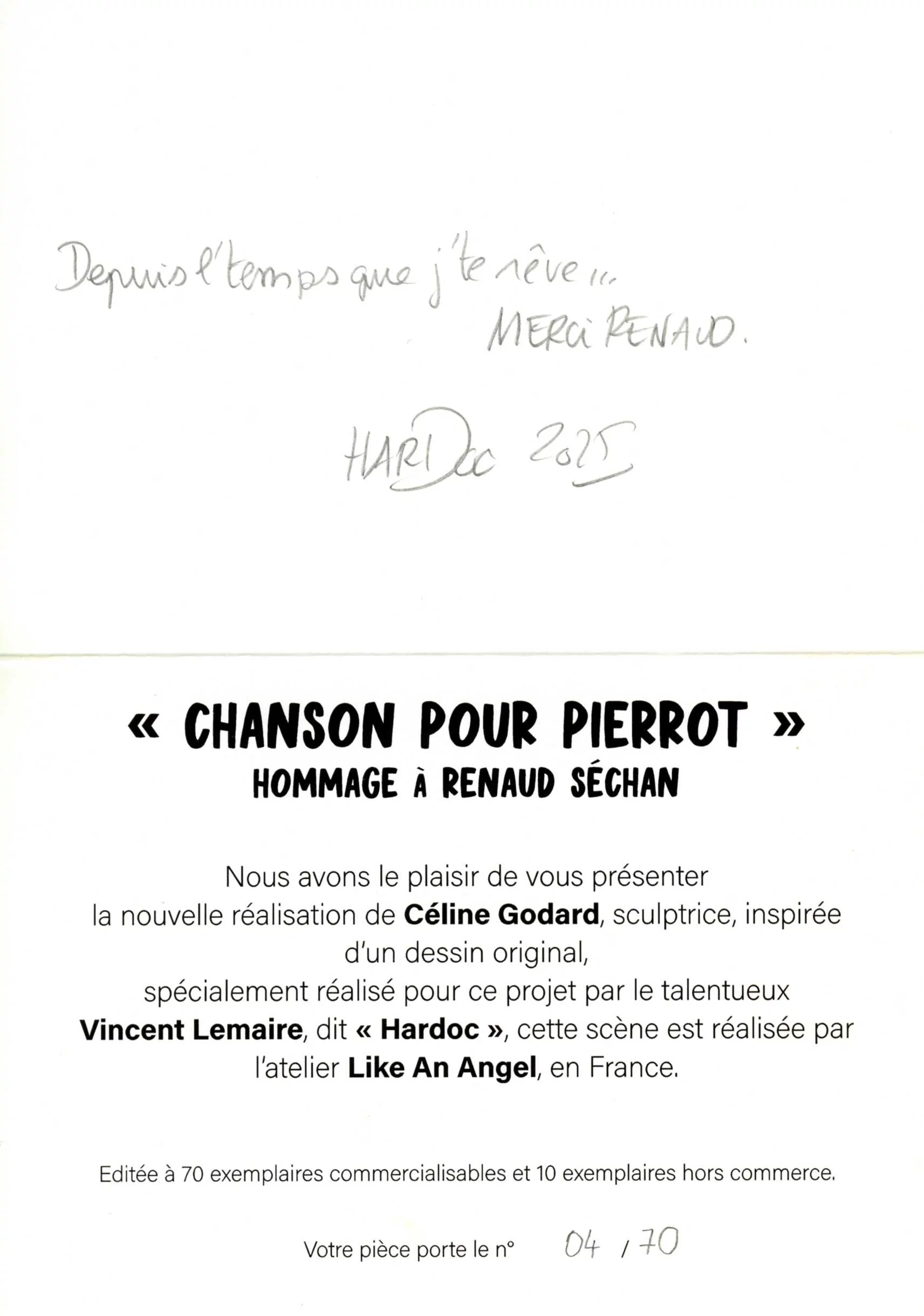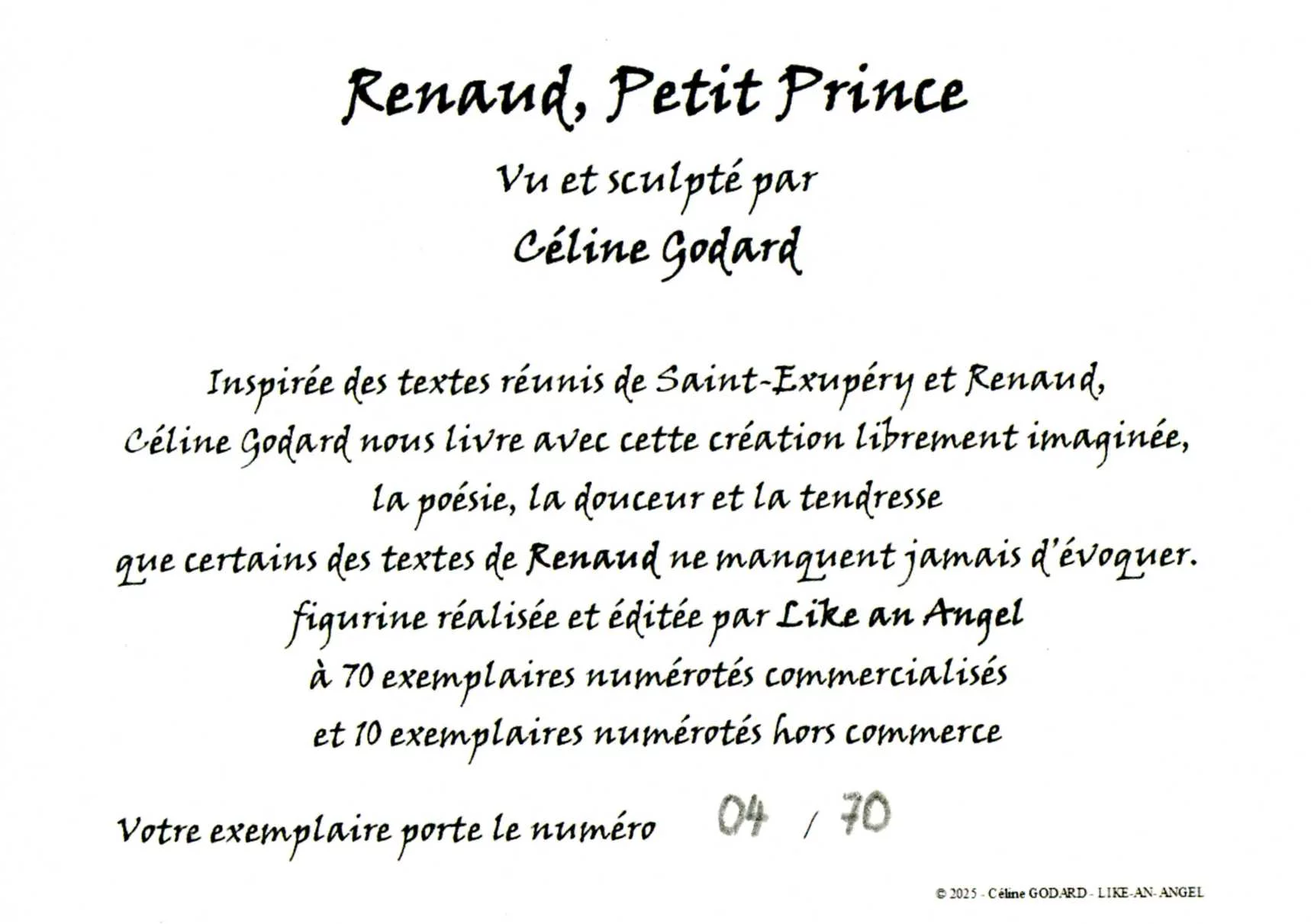 Tirage de 70 exemplaires commercialisés et 10 exemplaires Hors Commerce.