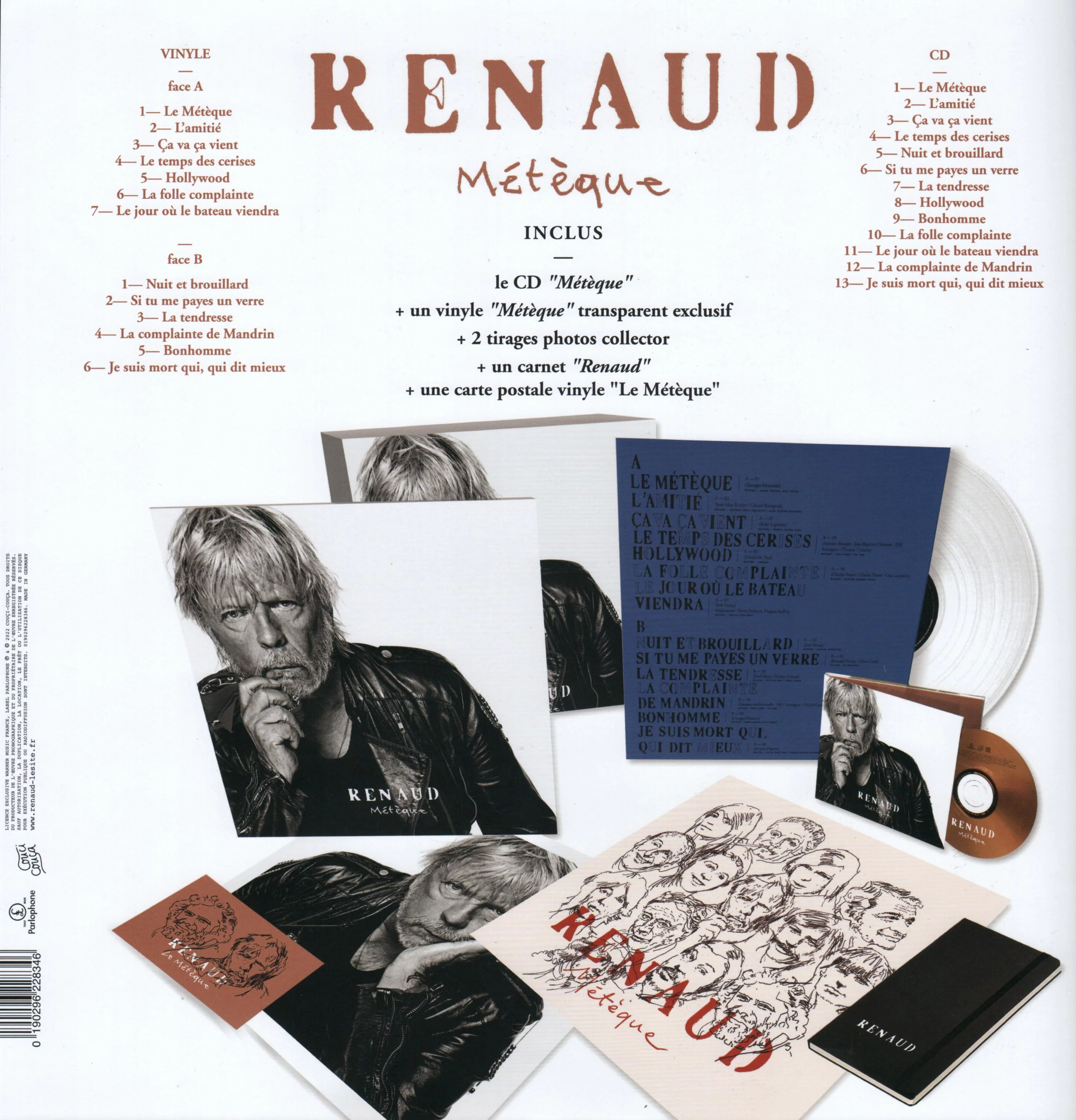 Contenu : 1 CD, le vinyle transparent, 1 carnet noir et 2 tirages photos collectors et 1 carte postale vinyle.